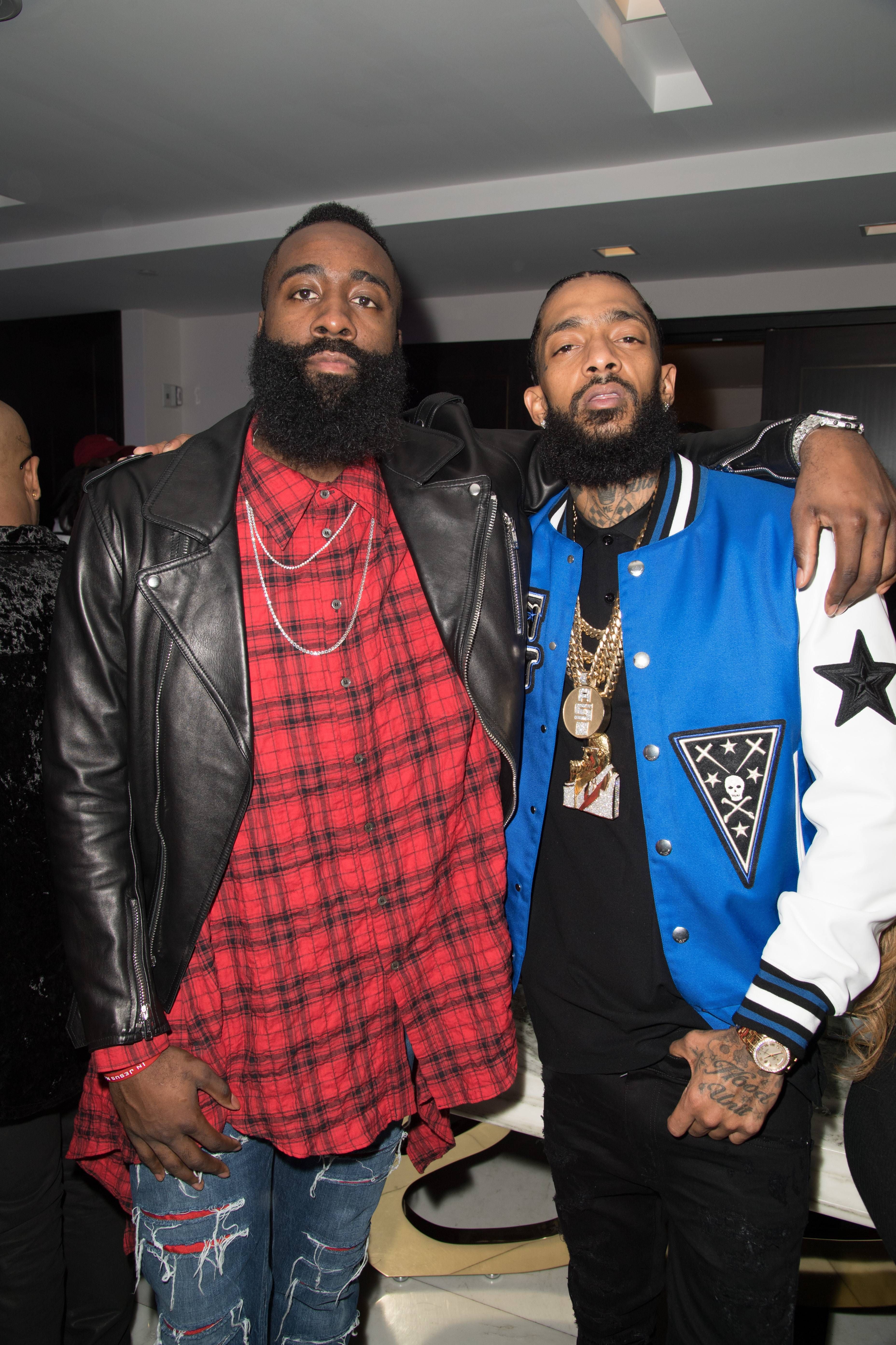 Harden and Hussle were friends for years, going to the same middle school in Crenshaw. The two of them talked about creating a sports agency to uplift young athletes in LA. Both would attend each other’s events, and Harden was seen wearing a medallion with Hussle’s face at games and press conferences after Hussle’s death.