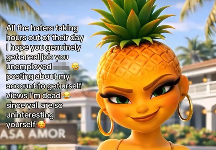 Someone made a whole “reality” series using AI about fruit people in love with each other on an island and it has gone viral on Tiktok.