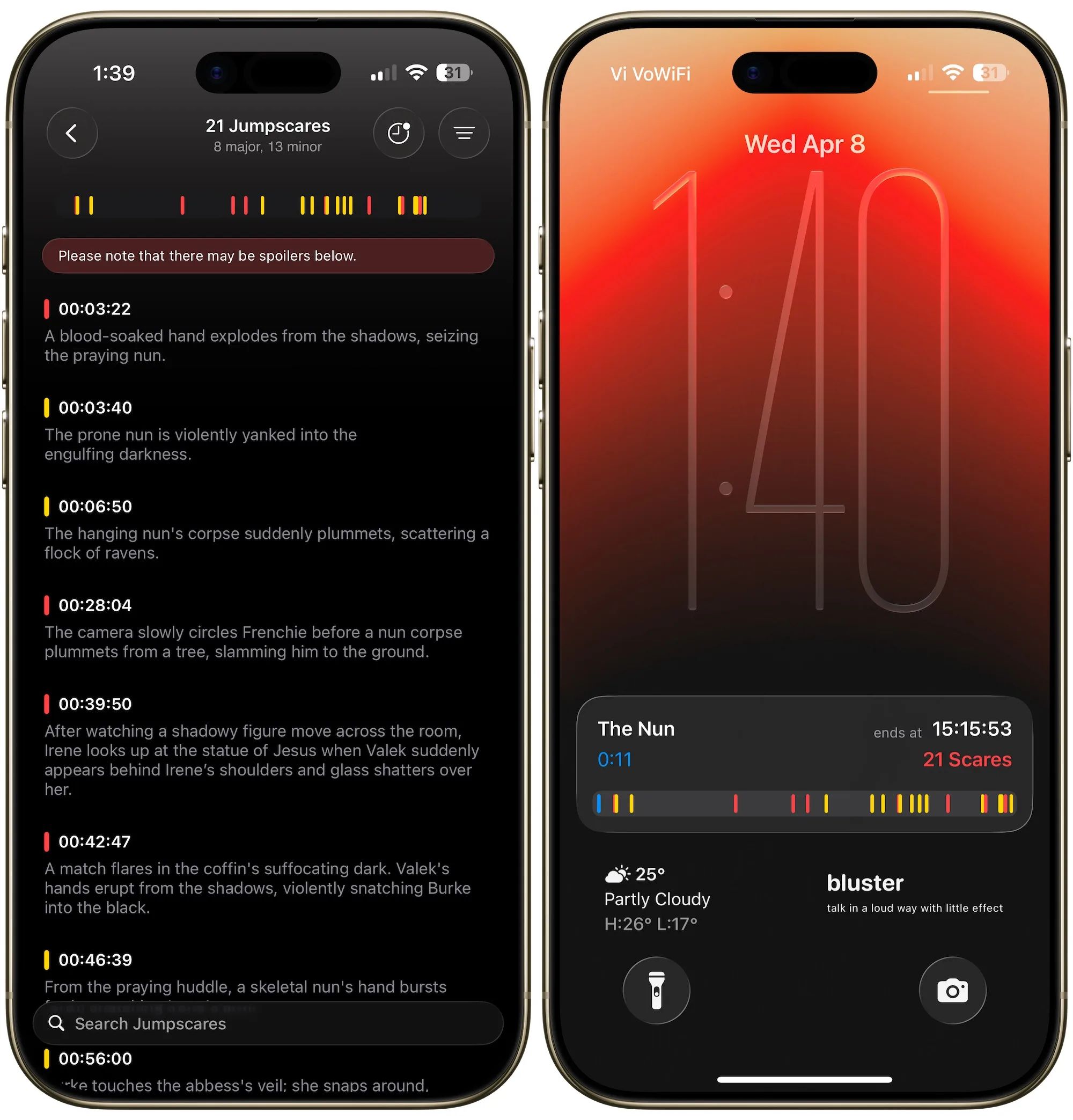 Powered by Apple’s live activity notifications, you tell the app when the movie starts and from then on, you’ll get live activities - think of the thing that pops up when your food is on the way but instead you get told when the scary part is coming up.